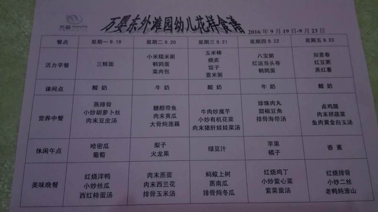 当前位置:首页 >> 长沙幼儿园 >> 万婴幼儿园展示 >> 万婴东外滩园 >> 花样食谱2016年9月19日--2016年9月23日