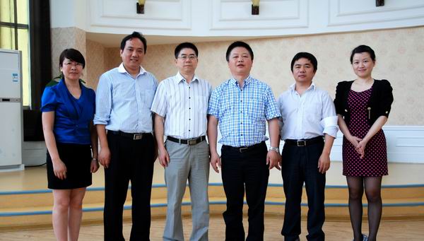 领导一行合影(万婴董事长黄平 左二,雨花区副区长张庆和 左三,雨花区教育局局长喻小健 右三)