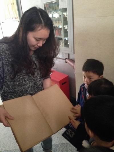 图书馆阿姨向我们介绍图书馆的构造和规则礼仪