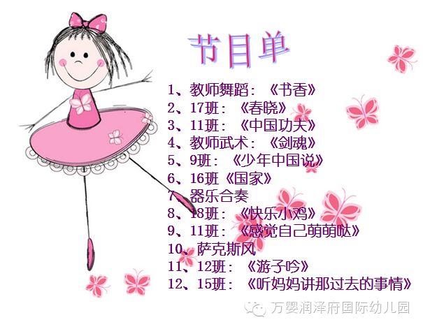 5、现场请勿乱丢垃圾;勿嚼槟榔和吸烟,不大声喧哗;做一个文明的观众,为宝贝树立榜样。6、请家长不要下位为幼儿拍照和摄像,我们有请专业的照相及摄影人员拍摄。7、因是外场演出,各位家长在观看演出期间,请注意身边宝贝安全,教育宝贝切勿单独离开大人。8、演出期间,家长们请给予宝贝积极的肯定,欢迎带朋友过来观看,这也是对宝贝最好的鼓励!