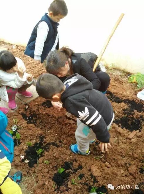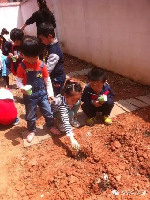 瞧,认真的宝贝们,种植的小苗是多么的弱小。