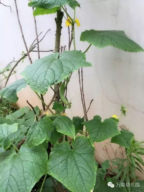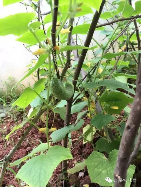 还有很多很多小黄瓜等着长大呢?保育妈妈说:黄瓜在晚上长得特别快,我们大家都好期待哦!