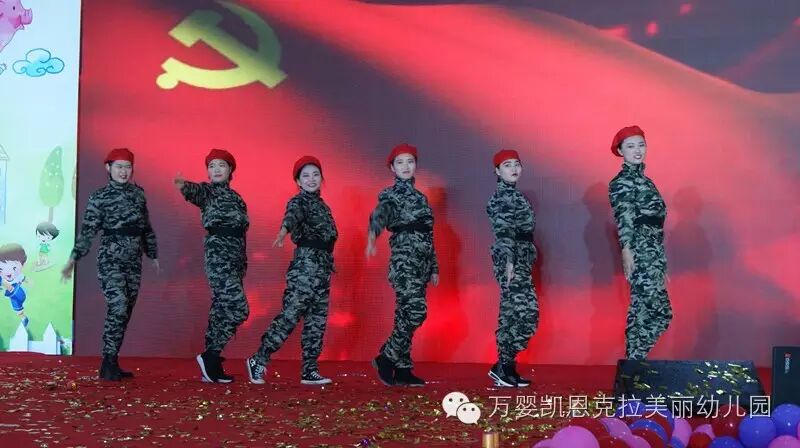 在《小星星》歌曲的美丽洗礼后,迎来了克拉园的压轴节目--《女兵谣》。这是一首红色情节的歌曲,克拉园的老师们扮演了一位位英姿飒爽的女兵。巾帼不让须眉,红色情结是大家共有的情结,我们应当记忆起往年的革命先烈给我们创造的美好生活,珍惜当下的美好的生活。