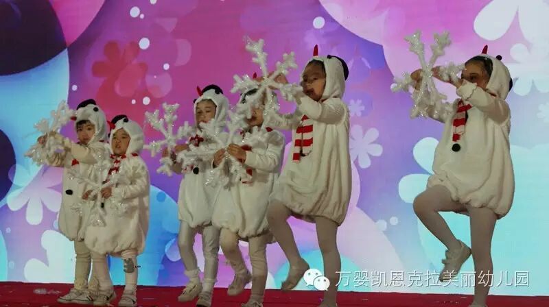 (图为万婴凯恩克拉美丽幼儿园表演《雪宝宝》节目的孩子们)