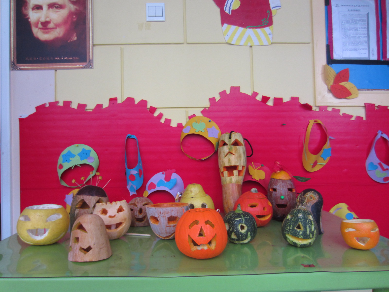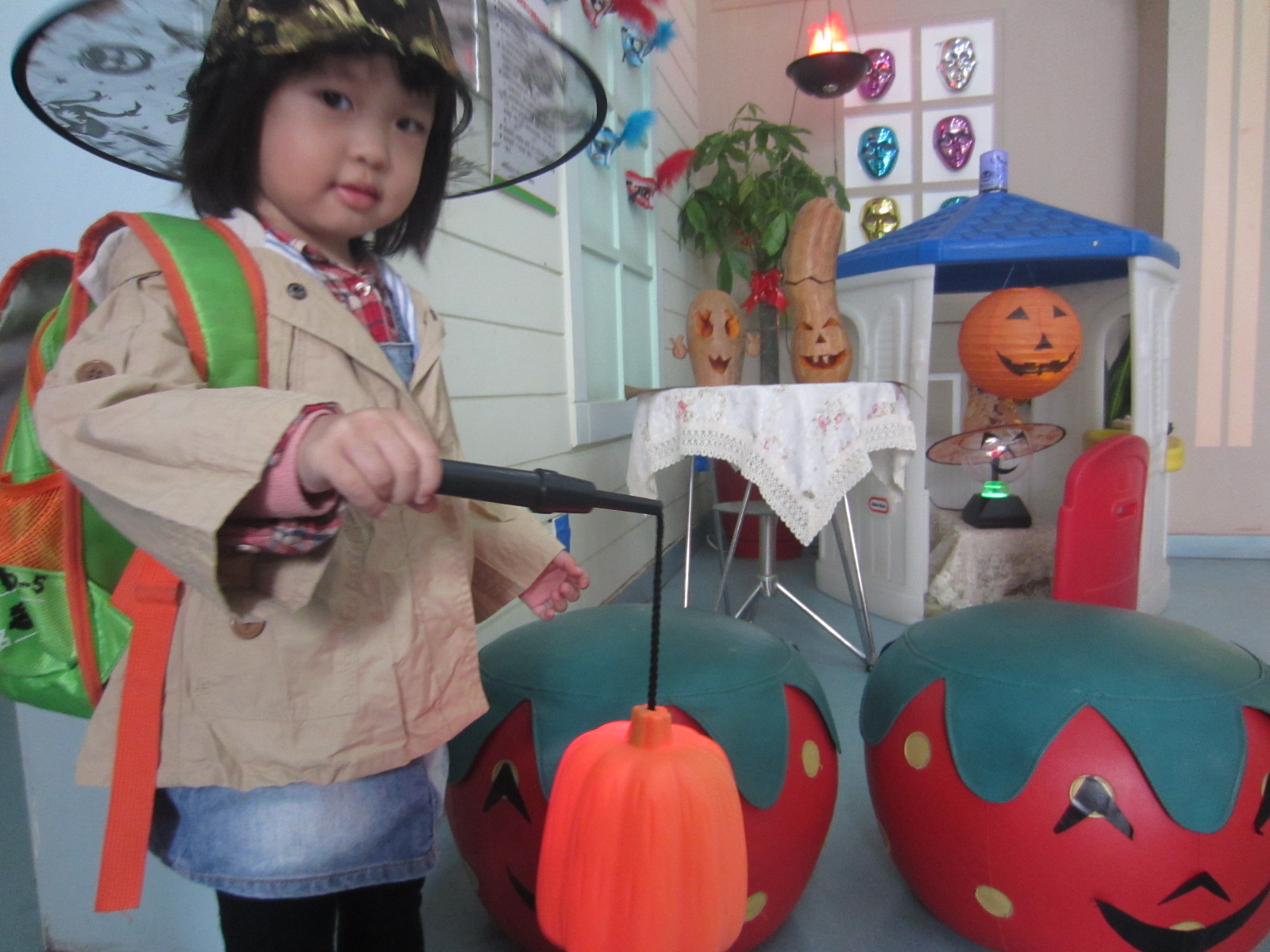 宝宝们也带了由妈妈爸爸宝宝一起做的面具、制作南瓜灯!