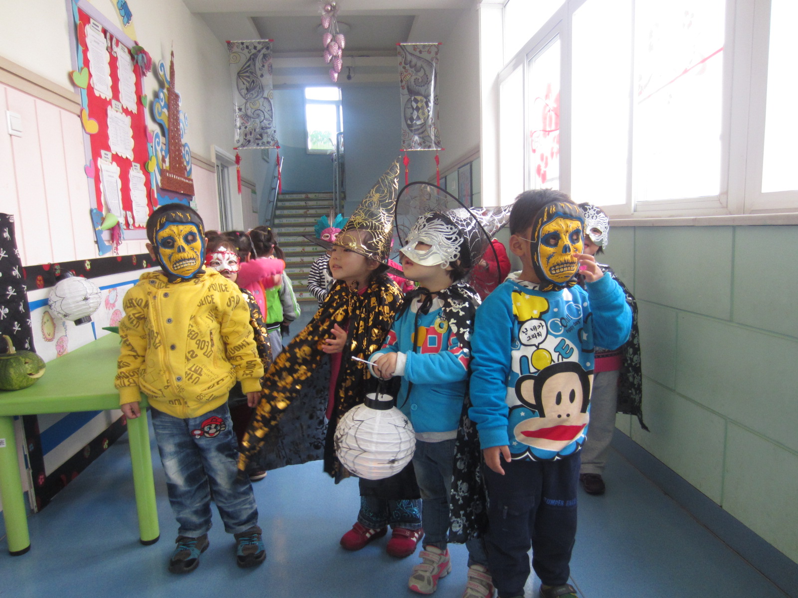 各班英语老师事先已经给孩子们普及了关于万圣节的一切,在孩子的眼里只有有趣开心,没有恐惧!