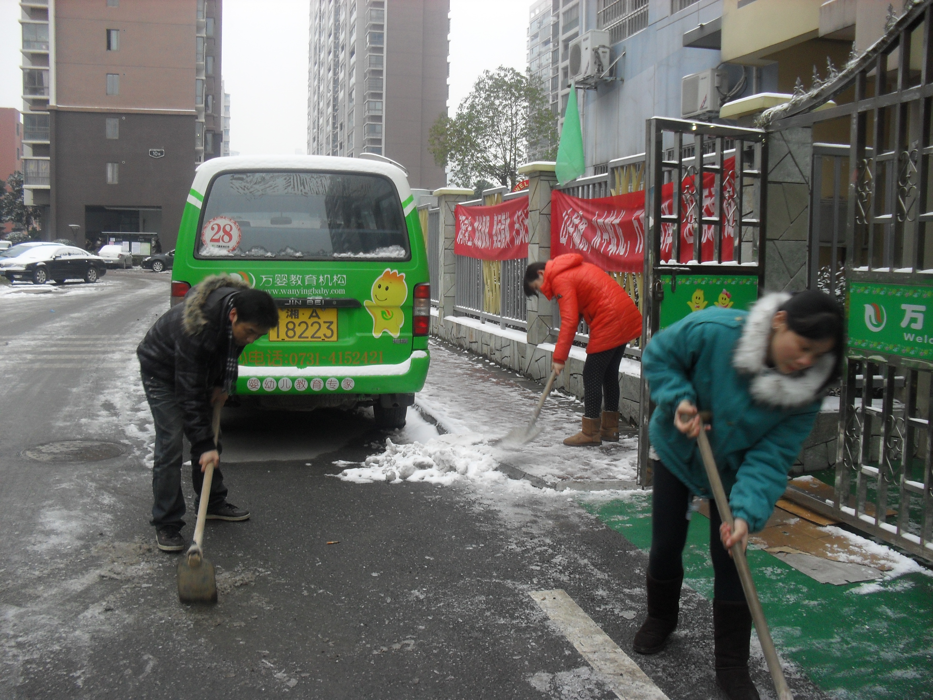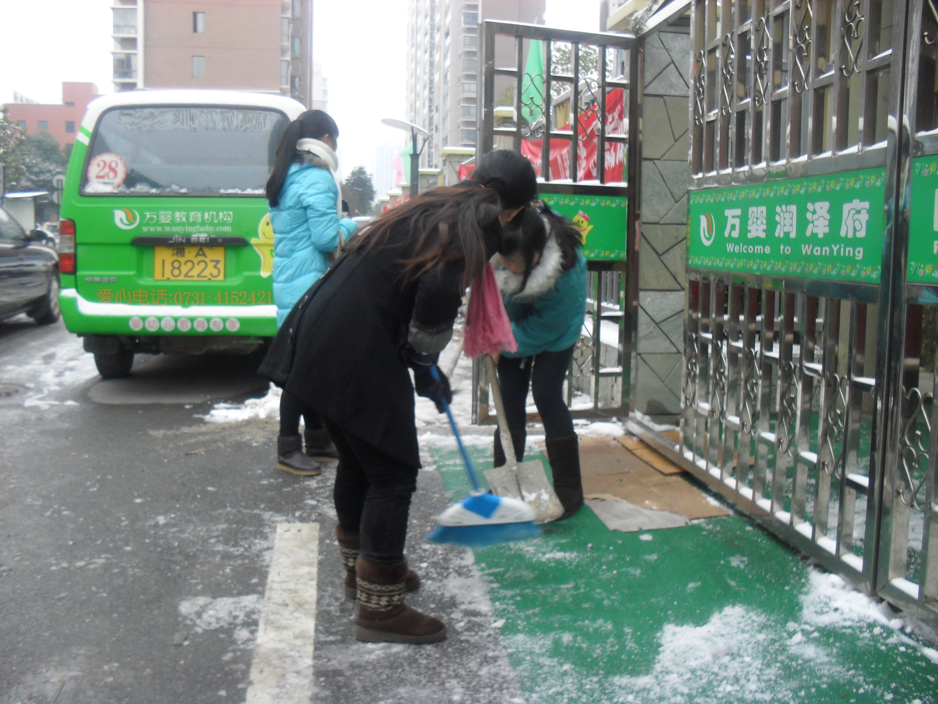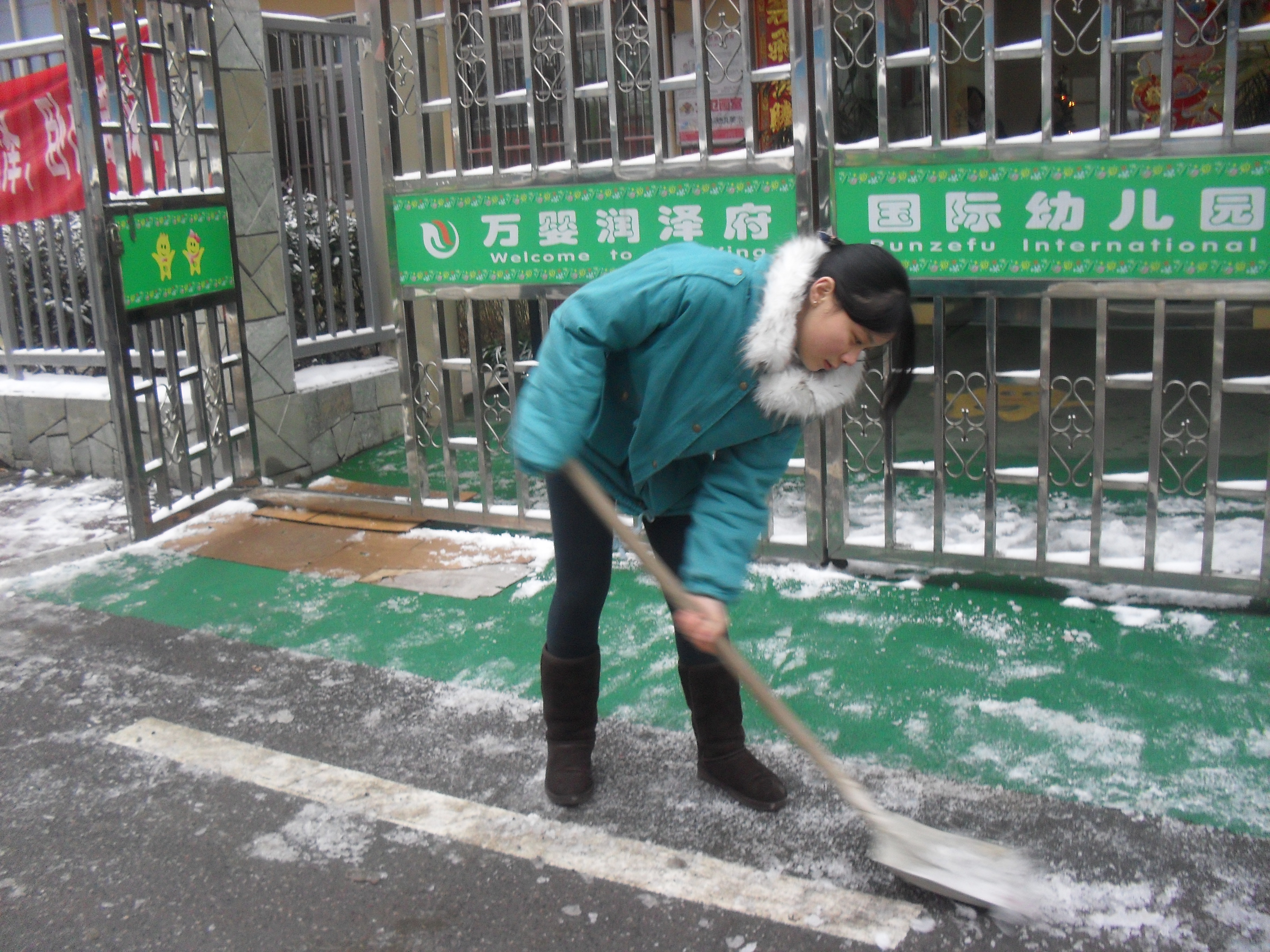 新一年瑞雪兆丰年啊!!!但是大雪也给幼儿园门外造成了很多不便~~~沉沉的积雪堆积在幼儿园门口,这样给小朋友来上幼儿园带了很大的不便,如是我们润泽府的老师主动一起去园门口开始了扫雪行动~~为小朋友上幼儿园创造了良好的环境。以下是润泽府园老师扫雪的图片: