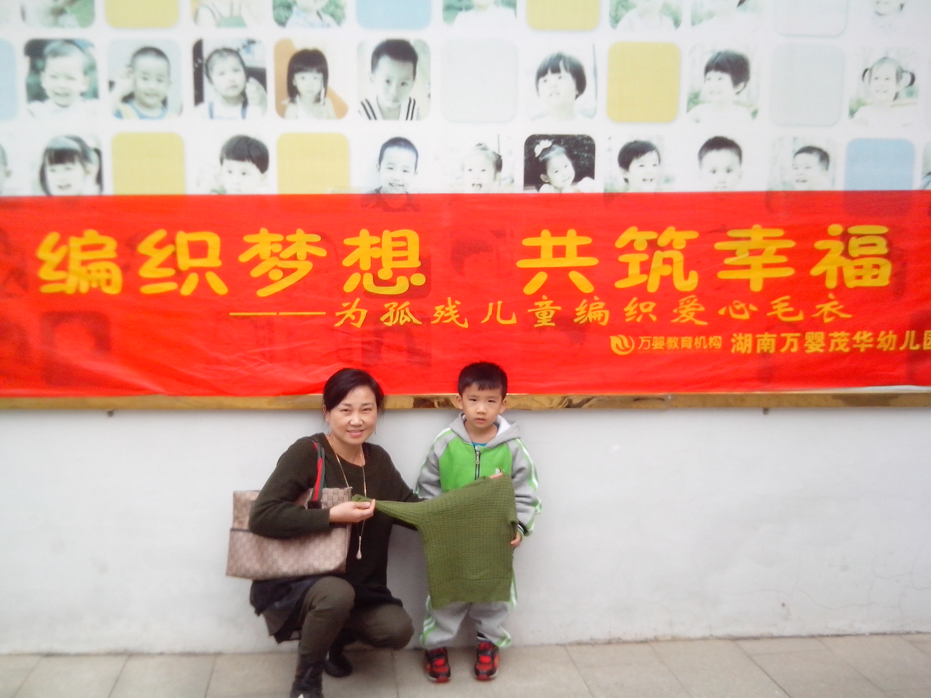 【万婴茂华园园讯】万婴茂华园幼儿园十月份组织了一项有意义的活动,纺织梦想,共筑幸福,为孤残儿童编织爱心毛衣活动,我并没有在意.因为我不会编,从小到大都是我妈编的,生小孩后小孩的衣服都是妈妈的朋友或别人送的.但是当我看到’’孤残儿童”几个字时,心里顿时一震,看到幼儿园放学时小孩子一张张幸福的笑脸扑向爸爸妈妈、爷爷奶奶时,想起了那些孤残儿童,没有父母家人是多么的可怜!虽然我并不会编毛衣,我决定我要学,还有一个月的时间,赶赶还来的及! 当领了毛线回到家准备纺织时,并没有自己想的那么简单,每天忙活一上午的家务活后就只有从下午的休息时间内抽一两个小时向小区里的阿姨学习编织了,纺织毛衣,横七竖八,一针一线对我来说还真有点难度,不过热心的阿姨是很耐心的教我 编织。每天的时间过得很快,一转眼就到了我接孩子回家的时间,接完孩子接下来一连串的吃饭、洗澡、陪他讲故事、写孩子成长日记、陪他睡觉。直到孩子睡后才起来开始织毛衣,开着不能太光亮的灯一边陪儿子一边打毛衣,有时看的眼睛很痛,真不想打了,可是一想到那些没有父母疼爱的小孩,我就洗个冷水脸继续加班啦。 十月国庆放假几天,因为外面人多、又怕感冒,所以没有带孩子出去玩,趁着这几天在家里拿着毛衣“埋头苦干”。有次天宝看到了就问:妈妈你在做什么呀?不跟我玩?手上老是提着个线袋子,我说在织毛衣,他又问给谁织?我说给孤残儿童,他天真的问“孤残儿童是什么?”我说就是没有爸爸妈妈的小孩,为什么没有爸爸妈妈?我耐心的说“有时可能他们爸妈因为意外、生病或者其它原因不在了,只有他们孤独的一个人,没有爸妈关心,现在天气冷了,他们又没有衣服穿多可怜呀”,儿子又问;是不是像””三毛流浪记’’里的三毛一样可怜.’’我说“是的”从那后看到我织毛衣再也不去扯线.而且有次还很认真地说“妈妈,以后我要赚很多钱,买个飞机,里面放很多衣服和面包,给那些孤儿送去”,我当时一听抱着儿子说“你真棒!只要你以后听话认真读书,有出息了一定会实现的.妈妈和你一起去发好吗?”,“好”。虽然是小孩一个遥远的梦想,但是从小给孩子心里播种了一颗爱的种子。 全国有几百万孤残儿童,他们的生活希望得到全社会的关注,只要人人都能献出点温暖,他们就会被爱包围,被幸福环绕。感谢横源祥和万婴教育机构给了我和孩子献爱心的机会! 【万婴教育机构茂华园团工委主席:邓芳勇】