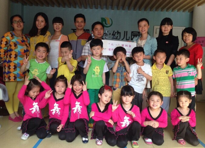 最后,陈局一行与一线老师和园内的小朋友们亲切合影,并代表教育局,送上了5000元的节日慰问金。