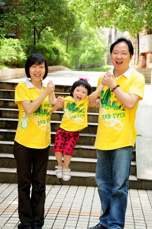 阳阳是一个活泼可爱而且特别爱笑的宝宝,她扎起了羊角辫和蝴蝶花夹,开开心心地和爸爸妈妈一起出去玩,一家人还穿着有趣的亲子服呢。我们来到了漂亮的小花园,阳阳和爸爸妈妈做起了游戏,阳光从树叶间透过来,洒在脸上,瞧这一家人笑得多幸福啊。