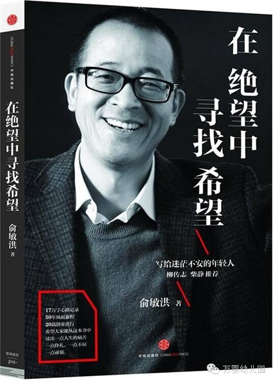 老俞亲笔撰写半自传心灵读本《在绝望中寻找希望》,说自己在北大超级自卑的5年,说自己跟创业伙伴的恩恩怨怨,说自己的对亲人的依恋愧疚,说自己面对压力绝处逢生,说自己在缝隙里感受诗意。