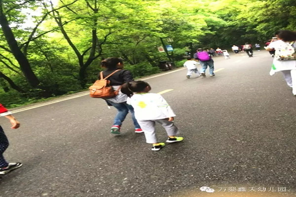 在大家的说笑声中,鑫天园的爬山队伍出发了。有了小伙伴们的陪伴、有了老师和爸爸妈妈的鼓励,孩子们自己努力一步一步往上爬,就连小班的孩子都是自己爬到山顶的哦!不知不觉中一个小时就到了山顶。