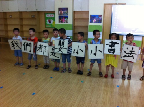 雨花区示范幼儿园 万婴曙光园的孩子们开展了书法作品展览活动,受到家长的一致好评。