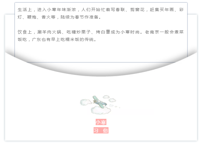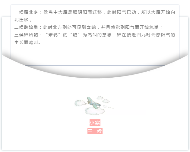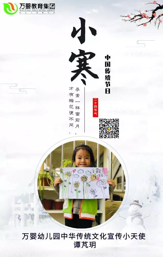 今天,迎来小寒节气。小寒是“二九”的第六天,我国气候开始进入一年中最寒冷的时段。民间历来有“小寒大寒,滴水成冰”“小寒胜大寒,常见不稀罕”等古谚。 万婴历来注重对孩子传统文化的教育,培养幼儿从小接受传统文化的熏陶。今天,我们万婴幼儿园中华传统文化宣传小天使,可爱的谭芃玥小朋友,将和大家一起来分享关于小寒节日的诗词和习俗。 邂逅小寒最美诗词 《小寒》 【唐】元稹 小寒连大吕,欢鹊垒新巢。 拾食寻河曲,衔紫绕树梢。 霜鹰近北首,雊雉隐聚茅, 莫怪严凝切,春冬正月交。 作者简介:元稹(779-831),字微之,河南(河南府,今河南洛阳)人,出生于长安靖安坊祖宅,唐朝著名诗人。与白居易共同倡导新乐府运动,世称"元白"。主要作品有《元氏长庆集》。 赏析: 诗的开头“小寒连大吕”一句中“大吕”出自成语“黄钟大吕”,指的古代音律中的十二律,黄钟和大吕分别是阳律和阴律的第一律。同时呢,古人也分别用这十二律指代历法中的十二个月份,黄钟对应子月,也就是农历的十一月,大吕对应丑月即十二月。 小寒这个节气在农历中一般是在十一月末或十二月初,这也就是诗中“小寒连大吕”的含义。 “欢鹊垒新巢”开始的五句说的是,古代将小寒分为三候:一候雁北乡(向),二候鹊始巢,三候雉始鸲,都说的是阳气发动后鸟类的活动。大雁开始北迁了,喜鹊开始筑巢了,野鸡开始鸣叫了。 鸟类对天地间的阴阳之气变化是最为敏感的。从冬至开始天地间的阴气达到极盛,这同时也是阳气复生的开始。 “莫怪严凝切,春冬正月交”这两句说,虽然仍是严冬,但离春天正月已经不远了。除了说明小寒的寒冷,其实也表达了诗人对春天的期盼。进入小寒,也就进入了农历的腊月了,这就真的是意味着旧的一年走到了尽头,新的一年将要开始了。