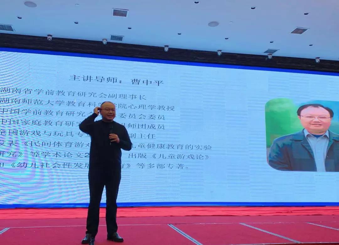 首先为大家带来精彩讲座的,是一位享誉学前教育界及心理学界的大咖,他就是被誉为“儿童游戏大师”、湖南省学前教育研究会副理事长、湖南师范大学教育科学学院心理学教授曹中平。