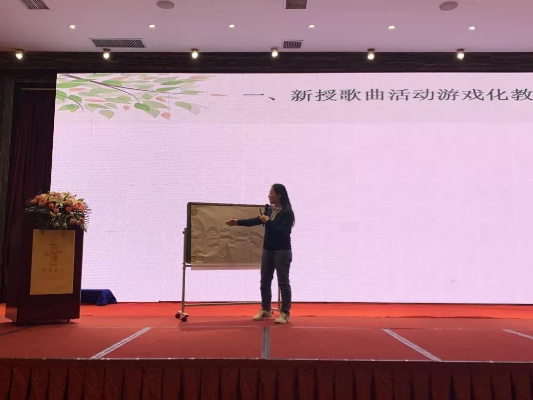 两位园长不仅带着自己的团队成员在台上向大家展示音乐教学的魅力,还进行了精彩的讲座,根据这几个课例进行了课例分析,梳理了游戏化音乐教学的流程,指出了重点,在场的老师都惊呼,原来音乐活动要这样组织,才能更好的帮助幼儿提升音乐素养。