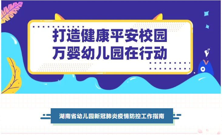 《湖南省幼儿园新冠肺炎疫情防控工作指南》共33条,主要内容有:开学前幼儿园应配备足量的体温计、消毒液、口罩等防护物资;开学当日要按照有关操作规范,统一对教具、器械、玩具、寝具、餐(饮)具及环境进行预防性消毒,保证教室、寝室、食堂等地空气流通及室内外环境卫生整洁;开学后要坚持每日监控全体教职员工和幼儿身体状况,严格落实幼儿晨午检等制度,如发现患病或疑似患病者,应及时上报幼儿园防疫领导小组并及时联系幼儿家长。