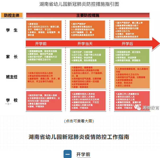 为做好全省各级各类学校开学前和开学后新冠肺炎疫情防控工作,保障广大师生员工生命安全和身体健康,湖南省教育厅发布了《湖南省幼儿园新冠肺炎疫情防控工作指南》《湖南省小学新冠肺炎疫情防控工作指南》《湖南省中学(中职学校)新冠肺炎疫情防控工作指南》《湖南省高等学校新冠肺炎疫情防控工作指南》。