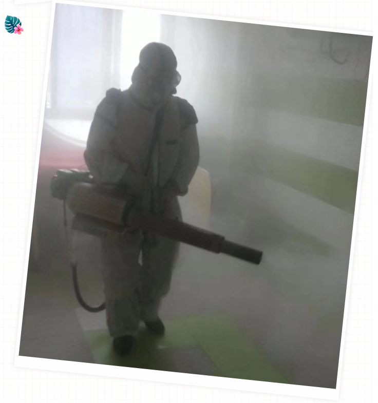 从大门口开始,背着沉重的装备,对园区的周边环境、所有功能室、操场、楼梯、走廊、厕所、办公室等公共区域等开展全方位的消毒工作。消毒工作持续了近两个小时,真正做到了全覆盖、无死角。