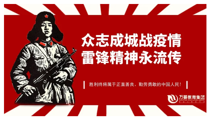 在此次疫情阻击战中,万婴理应义不容辞当好“领头雁” ,做战“疫”先锋,贡献力量。我们相信,在党和政府的正确领导下,全国人民定能众志成城,排除万难,全面打赢这场没有硝烟的战争