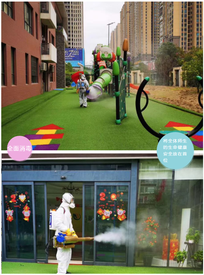 各园园务提前到岗开展疫情防控工作,同时全面加强园所日常消毒工作和门卫管理制度。