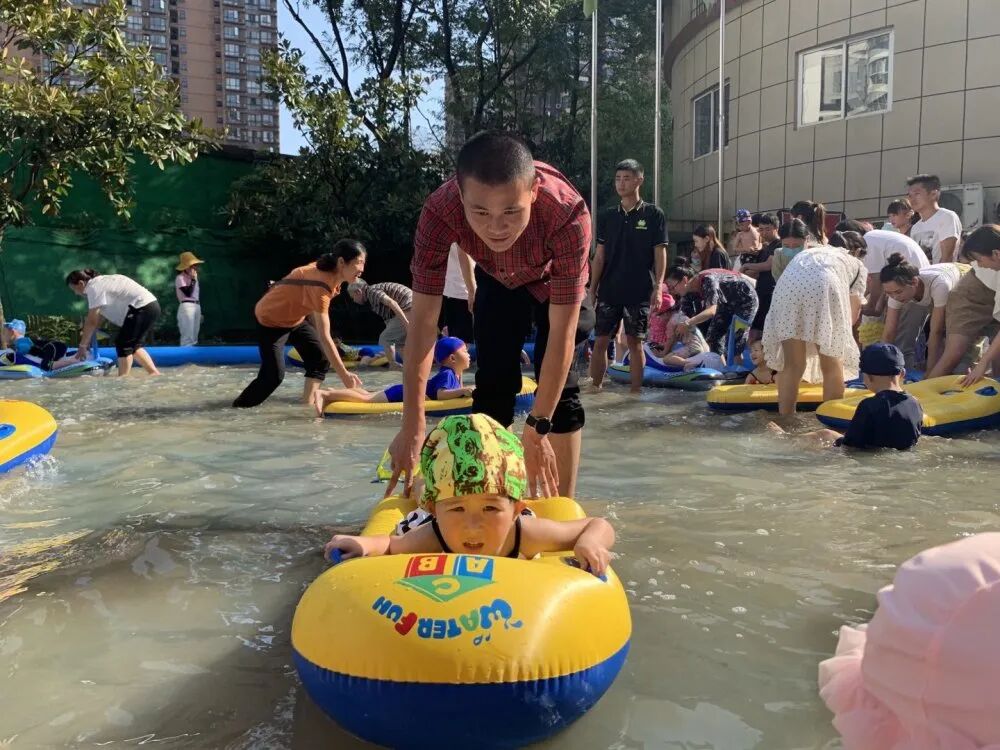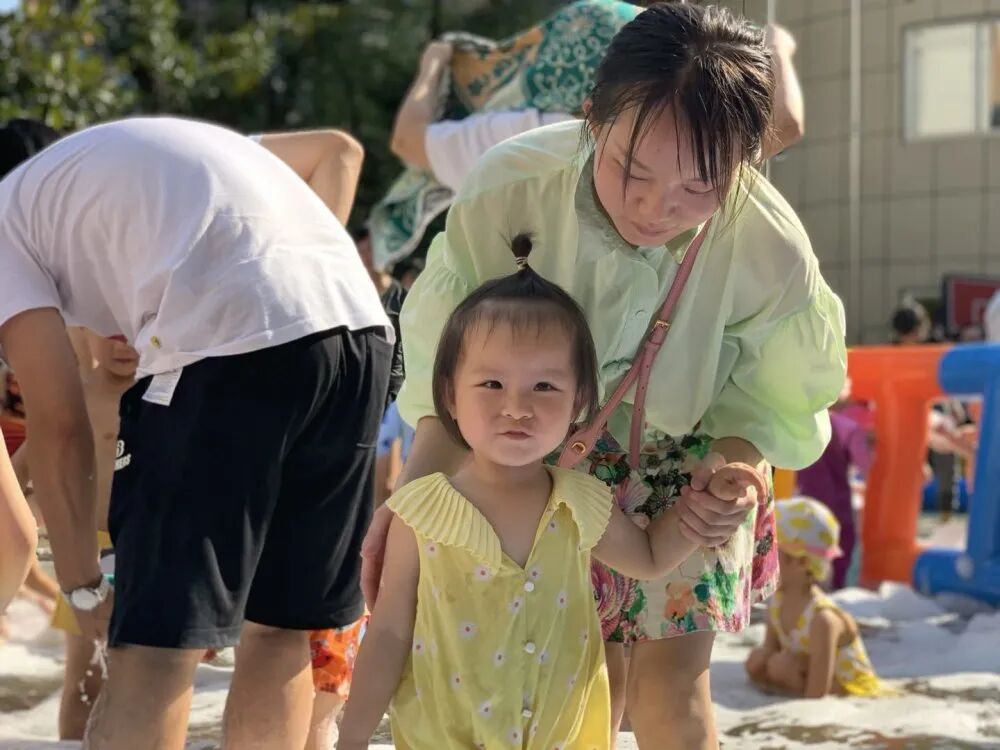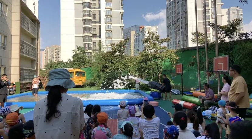 周五的下午开展的是户外亲子泡泡秀活动,主要是由爸爸妈妈带着孩子一起参与到户外的泡泡秀游戏活动中,游戏丰富多彩,宝贝们和爸爸妈妈的欢声笑语揉进了泡泡里,撒在了阳光下。