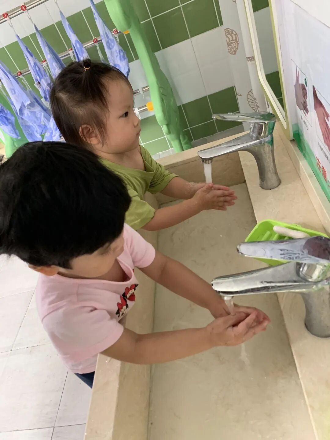 托班组以知道勤洗手、讲卫生的必要性为主,督促幼儿养成餐前便后洗手等好习惯。