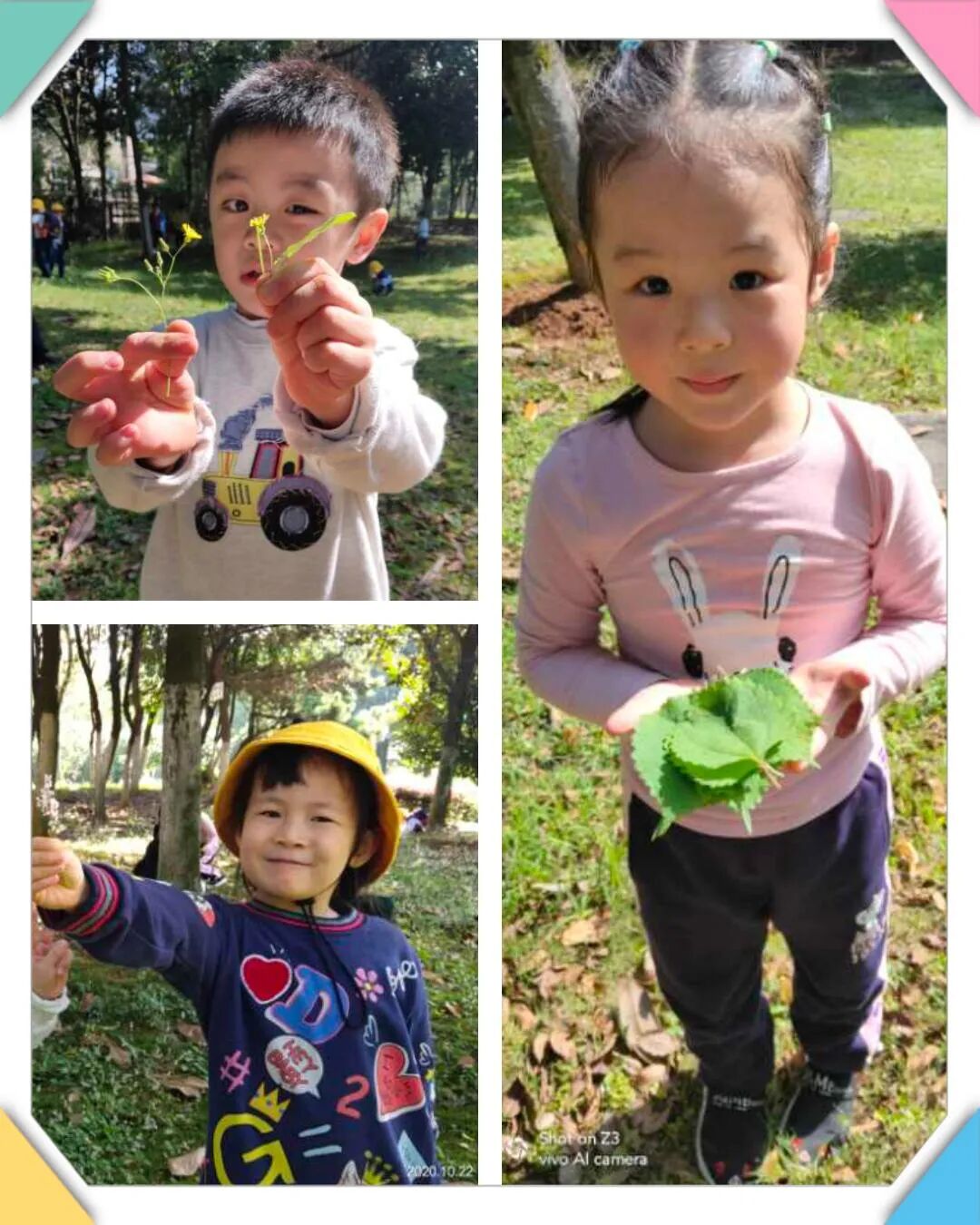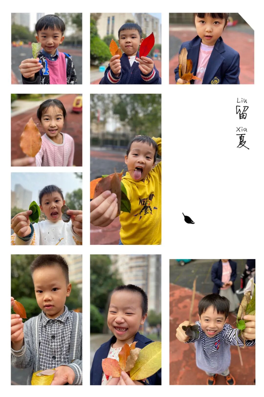 秋天 这秋天里满是枫叶成行的美景,凄美孤绝的秋色被西风一卷而过,金黄的林荫道上空摇晃几下,灿灿的叶儿盘旋着落地,一地碎金尽入眼帘。 立秋了啊 秋天的到来给了孩子们别样的感受,也提供了观察与探索大自然的机会。孩子们通过主动参与观察、猜想、验证气温和动植物的变化,初步掌握秋季的主要特征,了解它们和人们生活的关系;激发孩子们好奇心,多种感官观察与探索秋季主要的花卉树木和果实,并通过瓜果创意绘画进一步感受秋季的多姿多彩;品尝美味的秋天瓜果,体验秋天带给我们丰收的喜悦,并懂得应该珍惜人们辛勤劳动得来的劳动成果。 孩子们眼中的的秋天...... 秋天的气候 太阳高度角渐低,温度渐降;秋风送爽、炎暑顿消、硕果满枝、田野金黄。 秋天的树叶 秋,劳绩的季候,金黄的季候--同春一样心爱,同夏一样热情,冬一样诱人。 秋天的花 瞧--这是小朋友们画的秋天的向日葵 K3P1班《 秋天的向日葵 》 儿童绘画属于一类想象绘画,它以表达儿童的客观感应感染为主,不受客观形态和手范的束缚,是儿童天然、实实在在的感情透露,因此同样具有很高的审美价值。 K3C班《 美丽的向日葵 》 画中运用了线描 ,线描画是世界美术中一道耀眼的风景线。不同的线给人的感觉不一样。垂直线给人庄严、挺拔、高洁、希望、正直等感觉。水平线具有平和、安定、静止的感觉。斜线则富有变化、运动、紧张和不安的感觉。规则的曲线之人感到明朗、整齐、圆滑、有序。自由的曲线则显得活泼、优美、生动、柔和,给人流畅、优美而生动的感觉。 K3A班《 美丽的向日葵 》 秋天的水果 小朋友们正在品尝和分享秋天的水果哦 和老师一起动手剥石榴 和小朋友一起分享水果 水果分享会结束后,动手收拾卫生一起保持教室整洁~ 重阳节快乐 小宝贝们做的手工菊花..... 快乐的秋游 秋天,是万物成熟的季节,到处瓜果飘香! 在这美好的季节里,10月22日早上9:00大班宝贝们来到“月湖公园 ”秋游!他们一起在草地上自由玩耍,尽情地跳呀、玩呀,像一群放飞的小鸟。 中午,大家铺上野餐垫席地而坐,孩子们纷纷拿出自己的美食和大家分享,野餐结束,孩子们还不忘将自己的垃圾整理进垃圾袋。这次活动让孩子们拓展了视野,增长了见识,留在孩子们心中的是无尽的甜蜜回忆! 月湖公园远足 发展价值: 1️⃣遵守活动规则,培养集体意识,树立安全自我保护意识。 2️⃣通过看、听、触摸等多种感官认识和亲近大自然。 3️⃣乐于参与幼儿园集体活动,能独立自主背水壶走完全程。 安全教育: 活动之前必不可少的环节! 大家一起讨论在外面玩耍时要注意哪些危险的事不能做 1️⃣要跟随老师和集体,不能单独东奔西跑 2️⃣上下楼梯有序排队,不推不挤互相帮助 3️⃣马路上公园里跟随集体脚步,一个跟着一个走 4️⃣靠道路边上行走,要注意避让小区里过往的车辆 5️⃣有事情需要帮助时请找老师 《 奔跑吧 · 少年 》 和小宝贝们一起动起来吧~ 立秋 九点出发,十点半回到班级,历时一个半小时的远足活动,所有小宝贝都是独立自主完成的,没有喊累的小朋友,在这次活动中,爸爸妈妈们可别简单的以为只是去放风、闲逛喔,这其中的教育价值可是大的很呢! 安全教育环节让宝贝们知道安全出行的重要性和危险的事情不能做,慢慢培养集体意识,跟随班集体和老师一起行动,对于孩子们的安全意识也有一定的提升作用。而活动结束后回班的总结也必不可少。引导孩子们总结这次活动中,有哪些宝贝记得老师说的话要遵守哪些活动规则,有哪些事情不能做,表现好的宝贝给予表扬和鼓励,并帮助极个别缺乏集体意识和安全意识的孩子树立学习的榜样。 总而言之,今天的活动很成功,孩子们也玩的很开心,我们在这次活动中能够慢慢培养规则意识,而且通过亲身的多种感官来认识和亲近大自然,享受户外远足的乐趣,激发孩子们乐意参加集体活动的兴趣,同时远足也对锻炼孩子们的体能,增强体质,提高免疫力有很大的促进作用!以后我们也会多开展这样的活动,期待每个宝贝都能参与进来! 湘绣之旅 10月30日早上小水珠的天气也扑不灭宝贝们的兴奋与期盼,因为我们小记者此行的目的地是参观湘绣博物馆。车程行驶了不到一个小时就到博物馆,小宝贝们叽叽喳喳地议论着,迫不及待地排好队,走进了湘绣博物馆。 刚进博物馆,在解说员哥哥的引导下,大家迅速地安静下来,接着解说员哥哥精彩的讲解和介绍,让我们慢慢地了解了湘绣与针的来历,并知道湘绣是四大名绣之一,也是湖南具有地方特色的民间手工技艺,最有名的是鬓毛针法,还有能绣出前后图案不一样的双面绣。大家都听得入了迷~~ 毛 毛 虫 上 树 在孩子们的眼中也许秋天不像春天繁花似锦般五彩,也不像夏天生机勃勃般活力,更不像冬天银装素裹般纯洁,却有着属于她自己的特点,秋天就藏在孩子们捡拾的各色落叶中,秋天就藏在孩子们欢声笑语的秋游中,秋天更是深藏在金桂、秋菊的芬芳中...... END