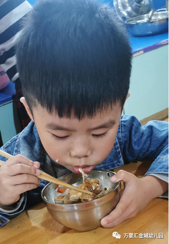 厨师伯伯制作的美食,孩子们吃的可香了。