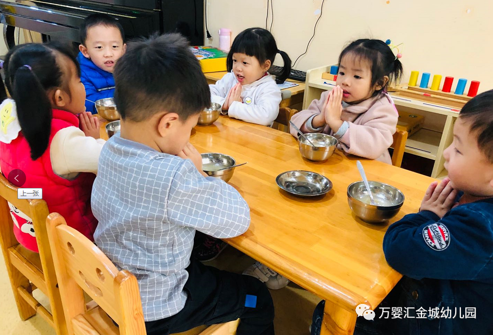 法国社会学家涂尔干曾说过“只有学会感恩,我们才能明确责任;只有学会感恩,我们才能体味真情;只有学会感恩,我们才能享受幸福,享受生活。”学龄前的宝宝们礼仪教育必不可少,瞧!万婴汇金宝宝们每天都要进行餐前感恩呢!