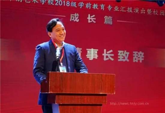 首先,黄平董事长对参会嘉宾的到来表示热烈的欢迎,并对即将走上实习岗位的同学们表示热烈的祝贺,向辛勤培育孩子们成长的老师们表示最崇高的敬意。接着,对于即将踏上工作岗位的同学们,他提出了几点希望:一、不忘初心,心怀敬畏;二、心系儿童,终身学习;三、求真务实,知行合一。他还就该校学前教育专业的办学情况,重点介绍了学校面积、开设专业、师资力量和精品课程,并介绍了学前教育专业开展的 “现代学徒制试点” 和“1+X证书试点”,以及学生在省市各类技能竞赛的获奖情况等。