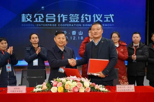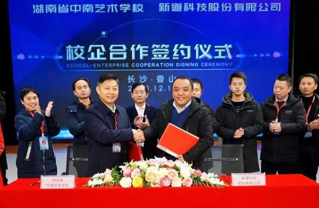 ▲2020年12月18日,我校与新道科技股份有限公司、华强方特(长沙)旅游发展有限公司的校企合作签约仪式在香山校区举行。
