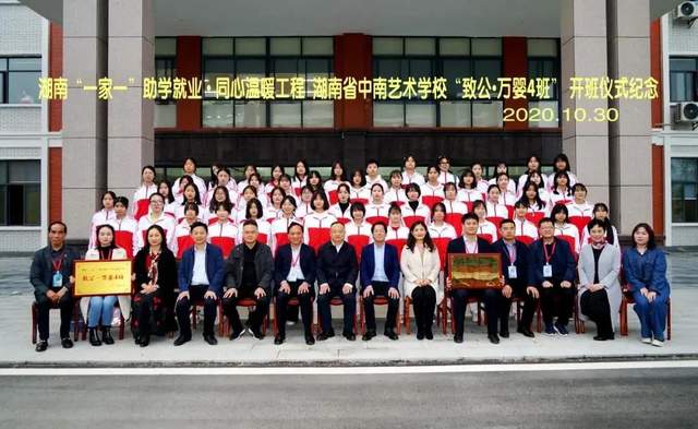 ▲2020年10月30日,湖南“一家一”助学就业·同心温暖工程——湖南省中南艺术学校致公·万婴4班开班仪式举行。