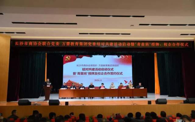 ▲作为长沙市商协会联合党委与万婴教育集团党委结对共建活动中“人才联育”的重要内容,2020年12月22日党建共建“青苗班”在我校正式启动。