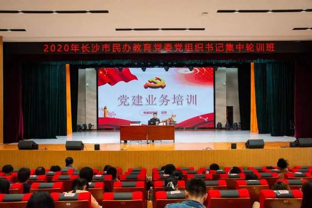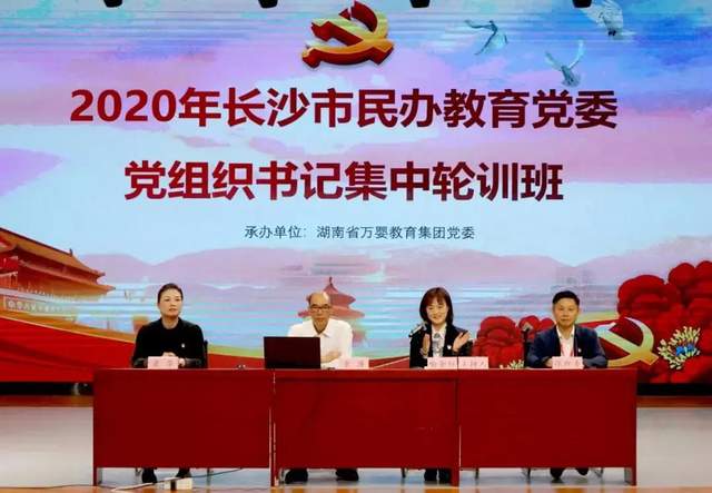 ▲2020年11月18日,由长沙市民办教育党委主办、由湖南省万婴教育集团党委承办的2020年长沙市民办教育党委党组织书记集中轮训班在我校举行。