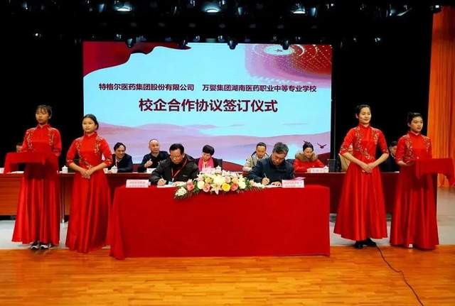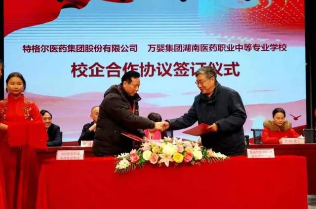 ▲2020年12月22日,特格尔医药集团股份有限公司与我校达成校企合作协议。根据协议,特格尔医药集团将成立我校的校外实习就业实训基地,为我校中药、药剂专业学生提供实习、就业机会和产学结合的实践项目,以提升在校学生的综合素质和实践能力,培养实用技能更强、更能适应经济社会发展实际需要的医药卫生类人才。