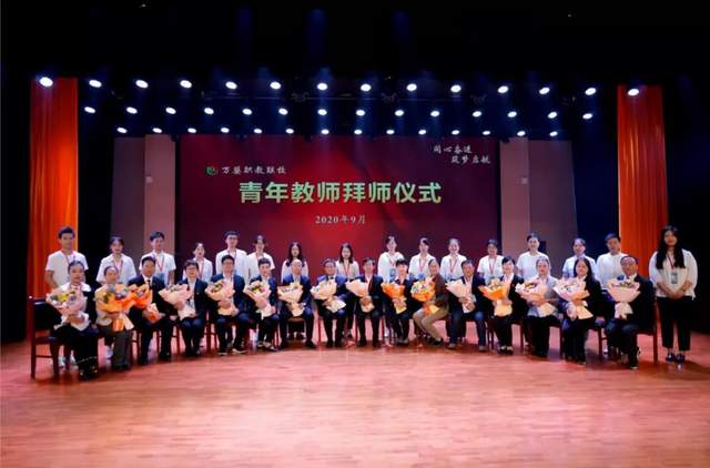 ▲2020年9月29日,万婴职教联校2020年优秀教师表彰大会举行,现场还进行了“青年教师拜师仪式"。