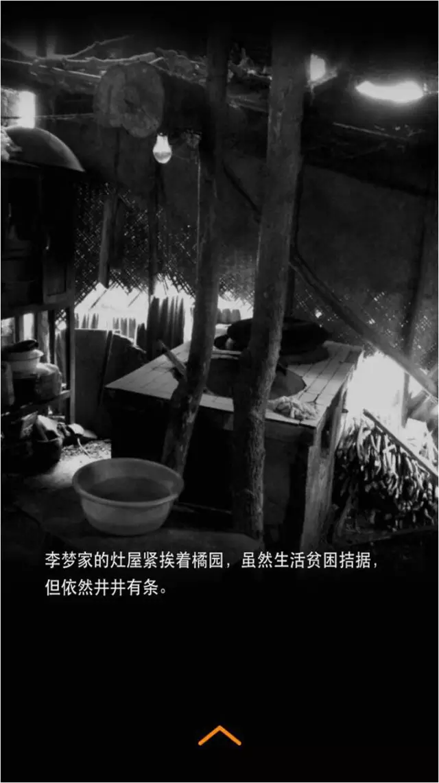 几幢低矮的土房子背后是一大片橘林