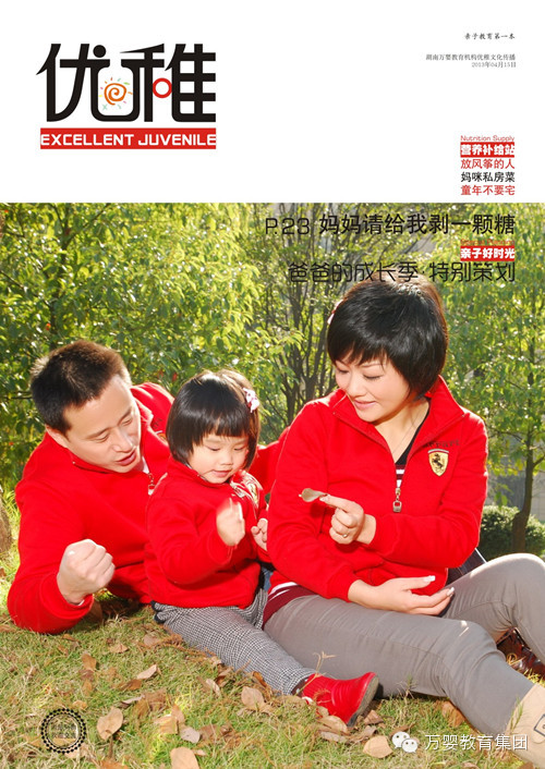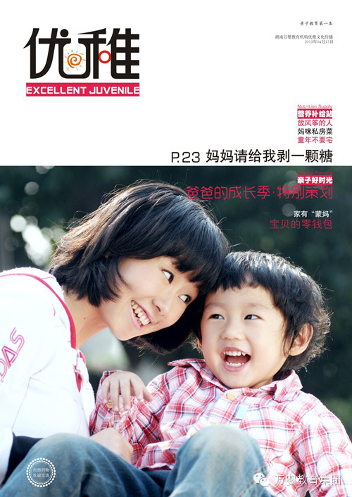 2014年,万婴教育机构《优稚》文化传播重磅出击,将特别为广大家长幼儿量身定制“家庭珍藏”版《优稚》杂志,只要您报名且提供您孩子或您家庭的亲子高质照片,符合条件者我们均可将您提供的照片作为杂志封面出品,将您宝贝和家庭打造为封面明星。