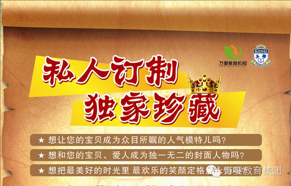 欢迎您带着爱人和您的宝贝在我们的杂志上留下幸福的影像记忆,“私人订制”,独家珍藏,每个宝贝都是最闪亮的星!还等什么?赶快拿起电话拨打万婴教育热线报名吧!