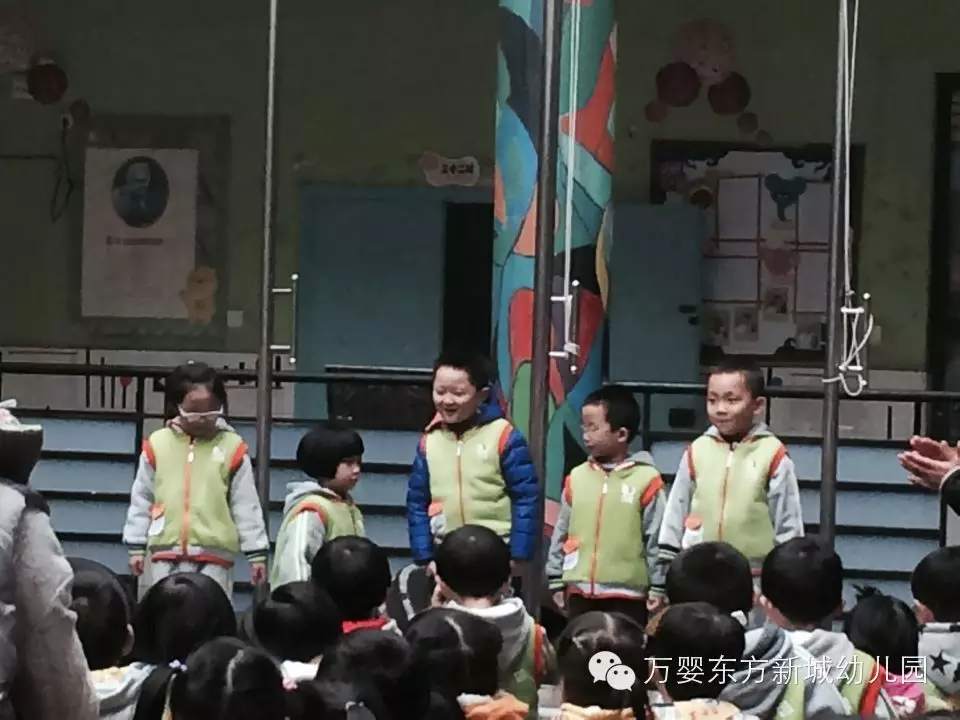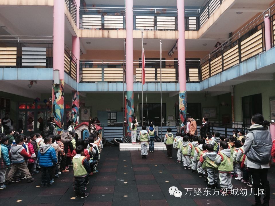 伴随着广播里激情的国歌,所有老师和万婴宝贝双眼炯炯有神的瞩目着国旗,仿佛带着宝贝们心中梦想的翅膀冉冉升起。更值得一提的是五名升旗手的优秀表现,他们的步伐犹如军人般铿锵有力,他们的神采犹如太阳般飞扬夺目,他们的声音犹如主持人般娓娓道来。真是幸福,因为他们是万婴宝贝,是祖国的未来!
