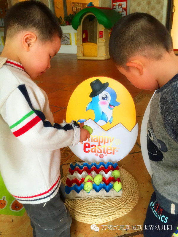 经过大家的共同努力,复活蛋都找到咯!带着复活蛋,宝贝们来到了园所接着进行狂欢活动!根据复活蛋上的图案将它放置在正确的孵蛋器上,宝贝们学会了分类。