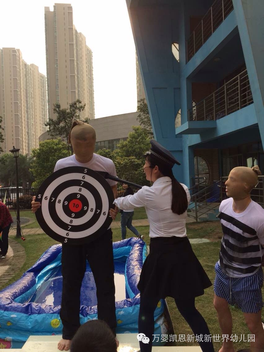 随着人质陈子老师的一声Help!勇敢的警察Candy,抓住了偷蛋贼,Aiden 和Adam。根据警察手中的提示找到真正的偷蛋贼,宝贝们需要仔细观察图案和真人,图物对应,找到真正的偷蛋贼,用手臂的力量,将子弹射出,击中偷蛋贼!随着偷蛋贼的落网,全场发出胜利的欢呼!本次活动达到了另一个高潮。