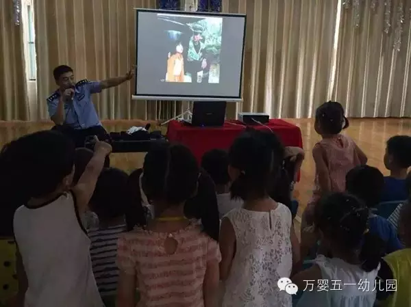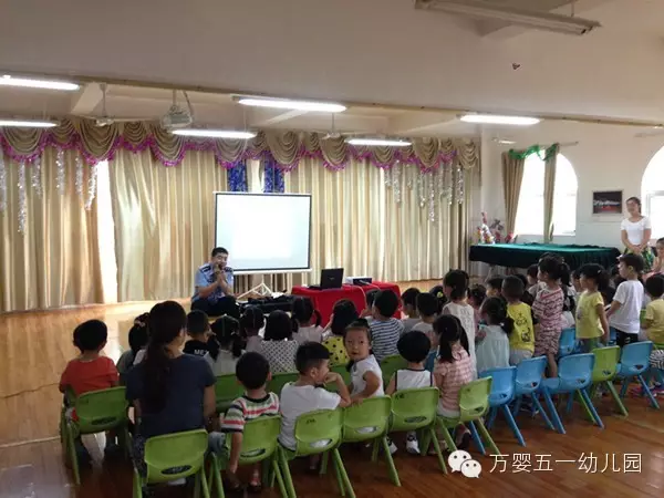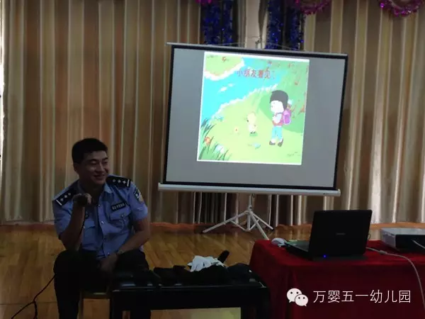 为了让孩子们更加懂得自我保护,万婴五一园特地邀请了家长义工——梁轶为爸爸。前期精心的准备,来园给孩子们生动的讲述安全知识。