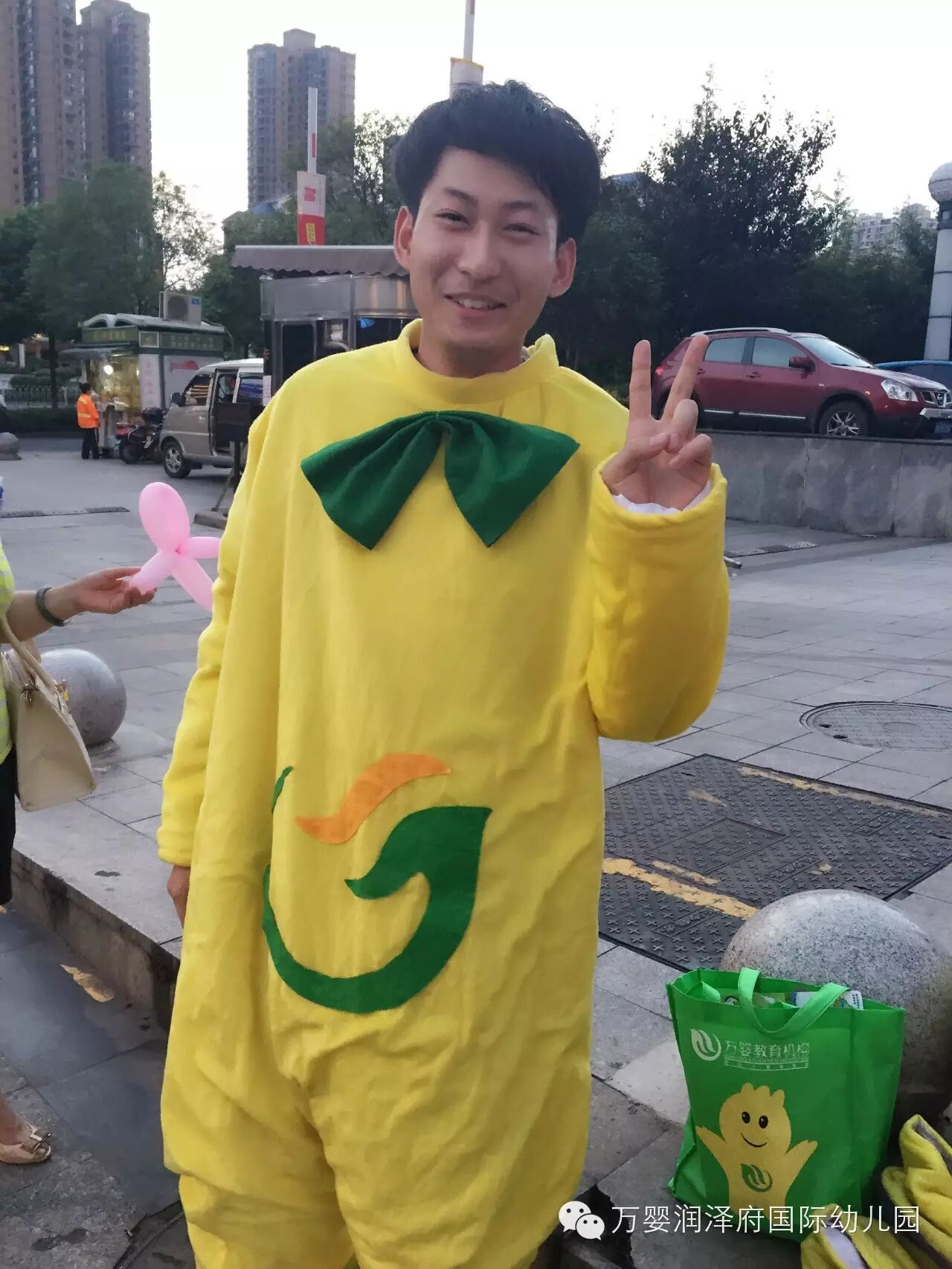 正值我们的招生季,华华老师作为一名新加入的成员,却能积极参与,每一次的外出搜单活动,他都冲在最前面,拿着礼物宣传单跟小朋友家长们认真热情地交流。炎热的夏季,华华老师主动申请要穿万婴的娃娃衣进行招生活动,顾不上自己会有多热会有多累。