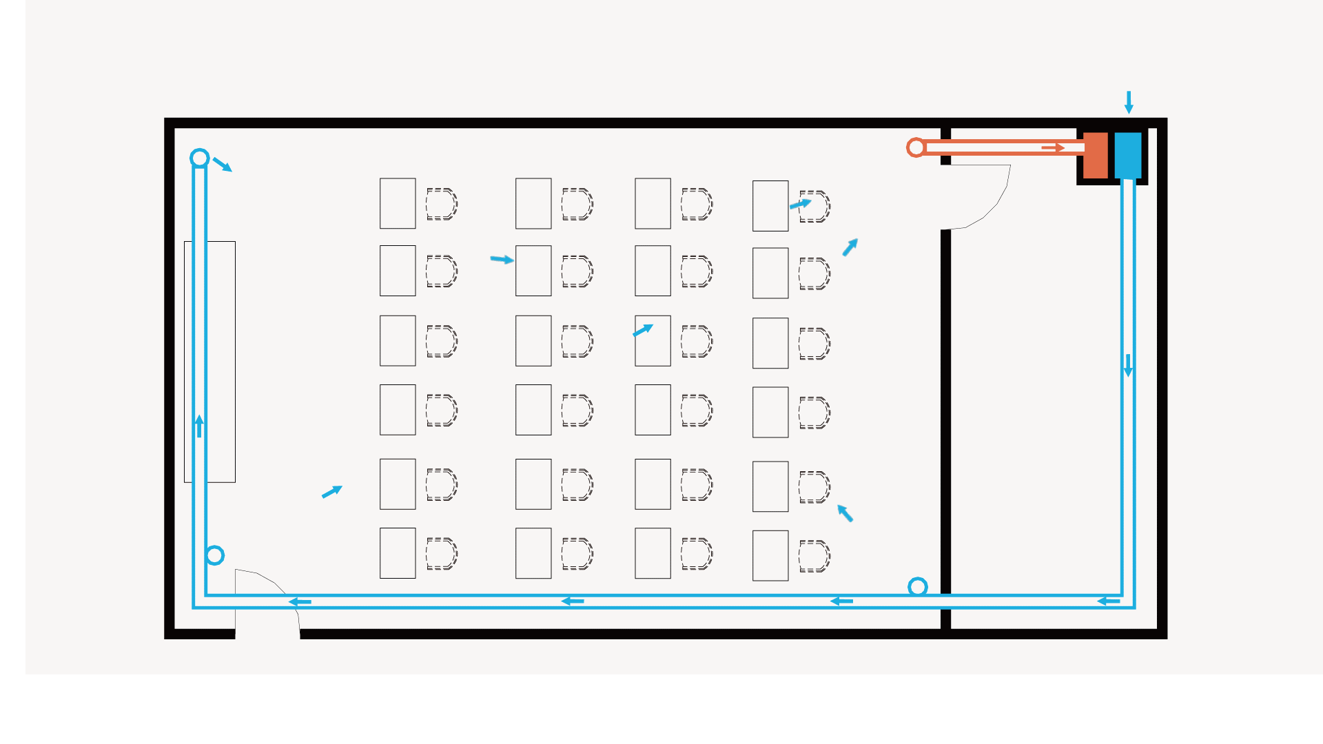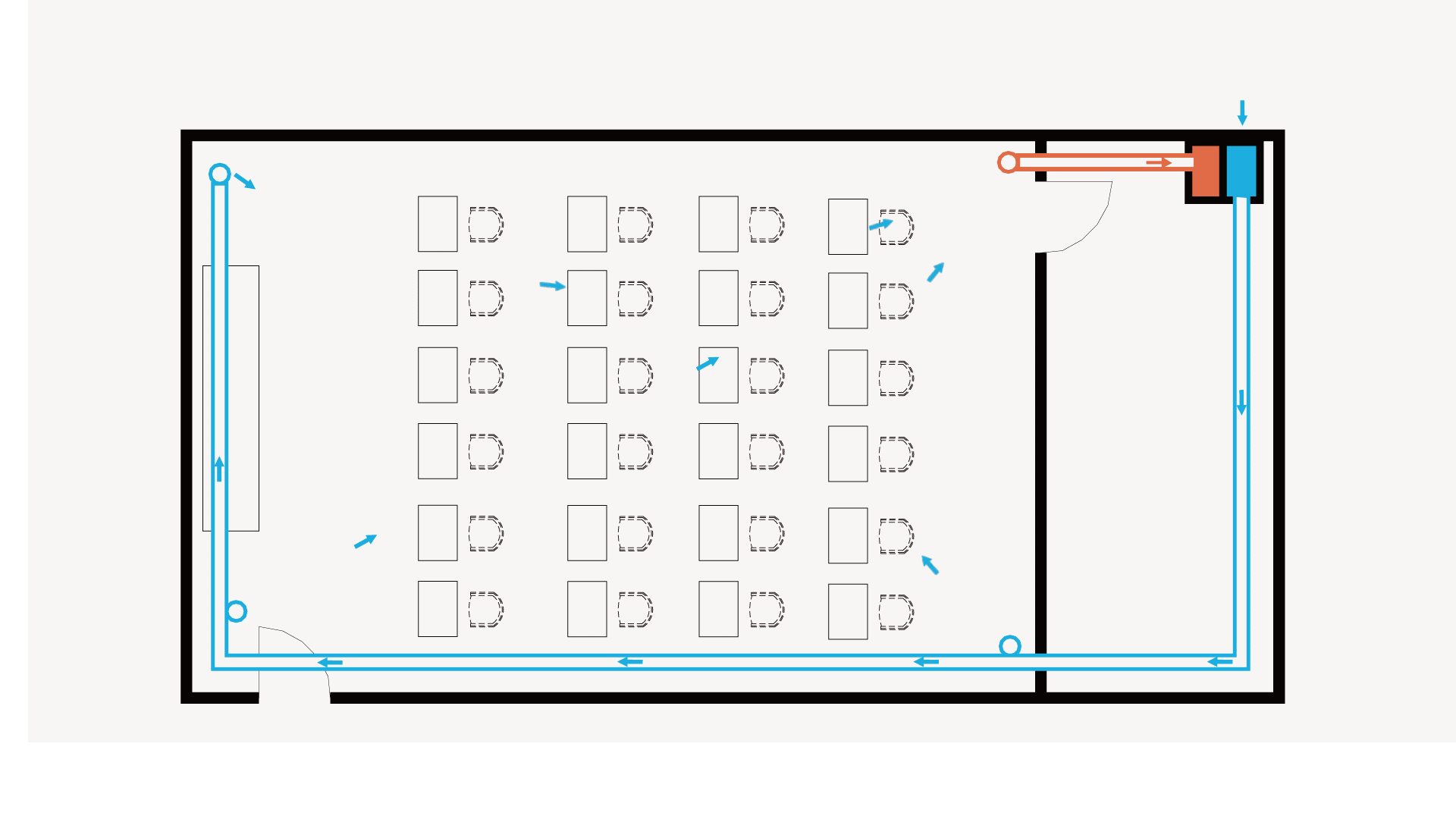 每间教室独立配置一台洁净新风机,全新风模式+静电灭菌,让每间教室空气不再混合回风,彻底消除交叉感染,让细菌病毒无处遁形。