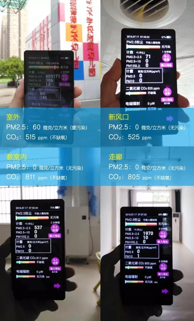 在万婴香樟艺术幼儿园“艺术素养博览会”当天,园所向所有家长重点介绍了远大洁净新风系统如何为孩子带来健康保障,并邀请家长亲自检测校园室内外空气质量,受到家长们的一致推崇。