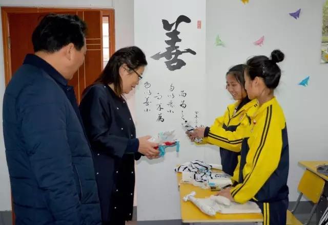 应若平副厅长还来到了致公万婴班,和来自武陵山区家庭贫困的孩子们进行了亲切交流,这些孩子将由万婴教育集团资助免费完成三年学业。应若平副厅长鼓励孩子们好好学习,学成回报社会。致公班的孩子们将亲手制作的手工艺品送给了应若平副厅长。