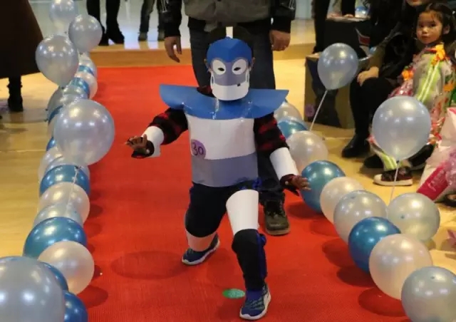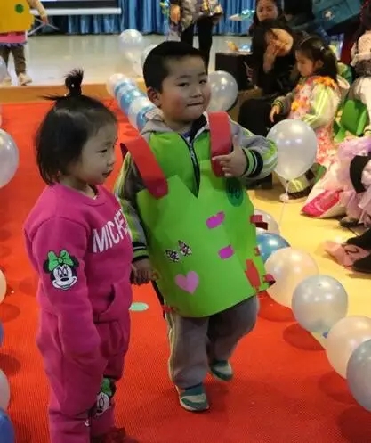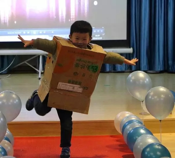废弃塑料、包装纸、报纸、废旧横幅,塑料瓶、纸杯、纸箱、包装袋、易拉罐,这些废旧材料变成公主的长裙、奥特曼的盔甲、印第安人的草裙、绅士的燕尾服。