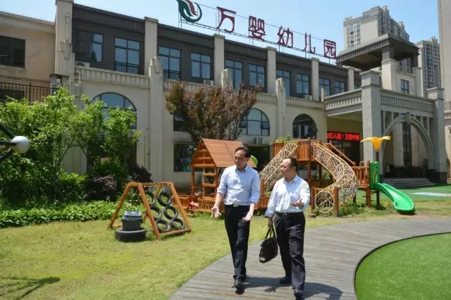在考察完我校后,谢处长在黄平董事长与万婴副总周益民等的陪同下,先后到万婴集团旗下的中粮幼儿园和时代幼儿园,饶有兴趣地进行了参观,感受了现代幼儿教育的活力与气息,并与黄平校长深入探讨、交换了加强幼儿教师管理、提升幼儿教师质量、稳定幼儿教师队伍等方面的意见。
